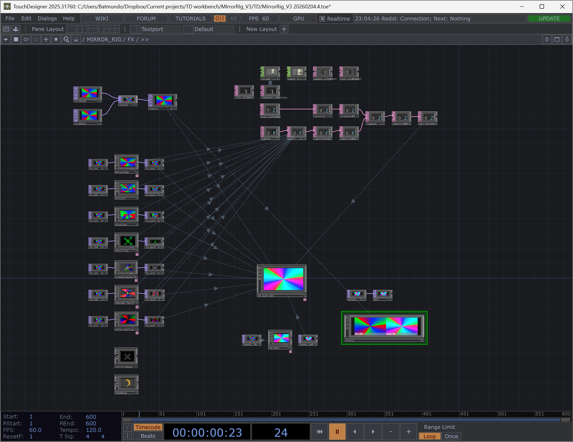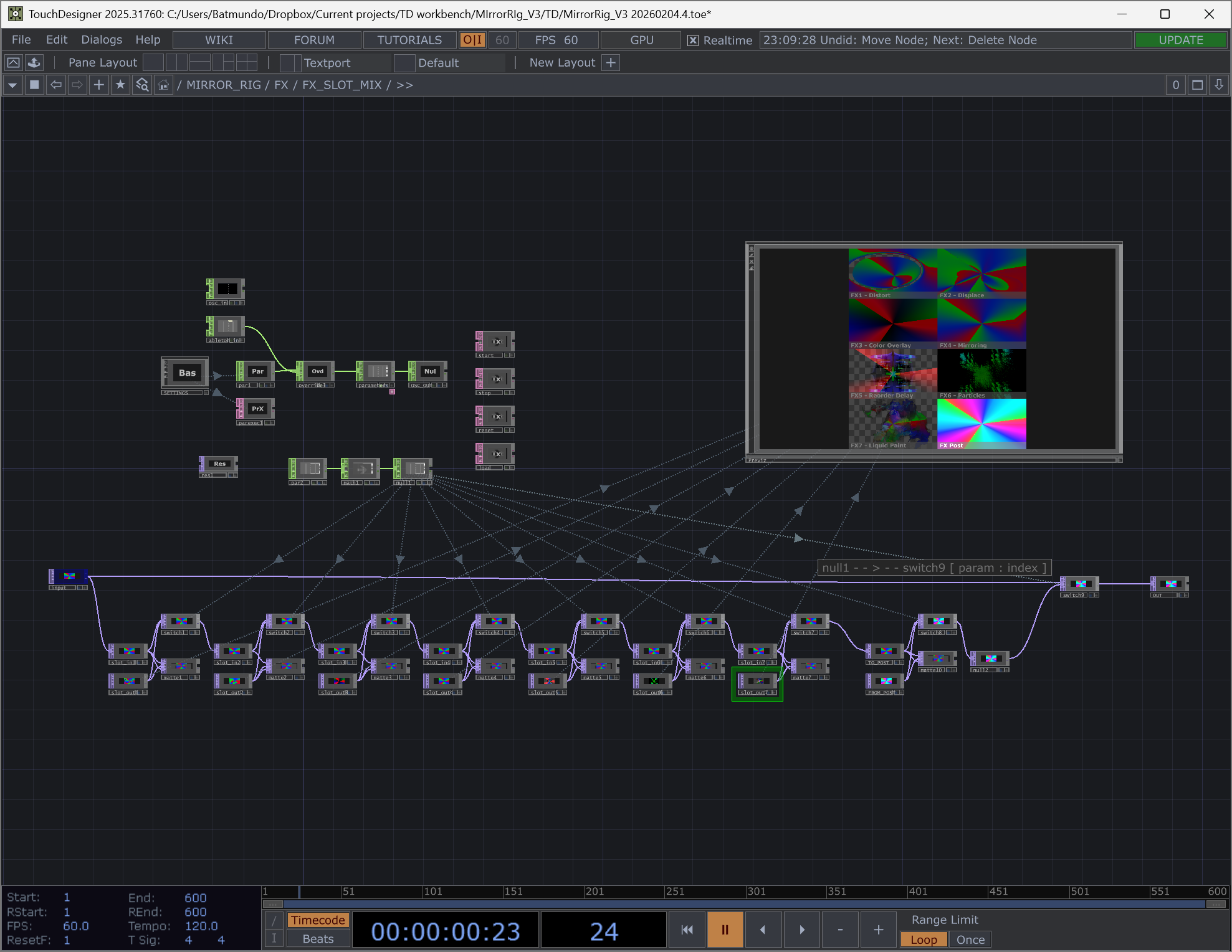 Developed in TouchDesigner, this engine utilizes a modular 'insert-style' architecture found in digital audio workstations. By adopting the signal flow logic of effect-chain processing, the system provides a flexible framework for stacking and reordering visual effects to achieve complex, layered results.
